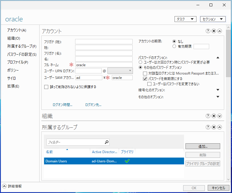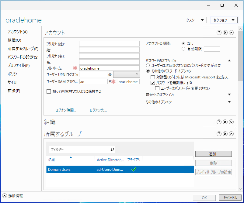 WindowsでOracle Databaseという時点で既にアレなのだが、さらにドメイン参加している状態で使うというキモチワルイ構成をちょっと試してみる。ちなみに私にはWindows Serverの知識は全くないので、Active Directory周りの操作はかなり適当。